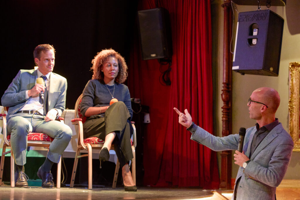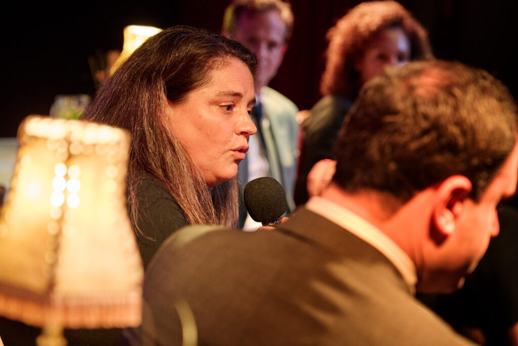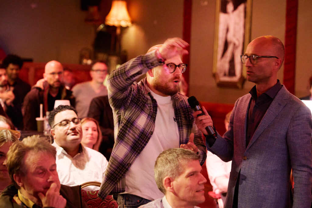 Het blok over AI liet verschillende gezichtspunten zien. Van Berkel benadrukte dat het maatschappelijke debat is verschoven naar online, maar dat opruiende algoritmes aldaar het debat in de weg staan. Als overheid moet je organiseren dat dat op een andere plek kan; de overheid moet bijvoorbeeld een eigen kanaal hebben, zonder desinformatie. Ook benadrukte ze de morele taak van de overheid, specifiek in het licht van de mensen in de meest kwetsbare posities die vaak de dupe zijn van AI-gebruik. Buijsse wees op kansen: AI kan een efficiëntere overheid opleveren en vraagt samenwerking met bedrijven. Daarnaast ziet hij hierin een oplossing voor de krappe arbeidsmarkt. Een eigen overheidskanaal zag hij niet voor zich – hij wil ruimte voor private initiatieven. Kathmann pleitte voor stevige regelgeving — zelfs verboden op bepaalde algoritmes waar nodig — en riep op tot Europese coalities of een “coalition of the willing” als Europa faalt. En ook zij benadrukte dat we “geen spelletjes moeten spelen met mensenrechten, ook niet bij technologie”. Hawezy legde de klemtoon op zorgvuldig gebruik en transparantie: de overheid moet scherp kijken waarvoor algoritmes worden ingezet en dat helder uitleggen aan burgers.